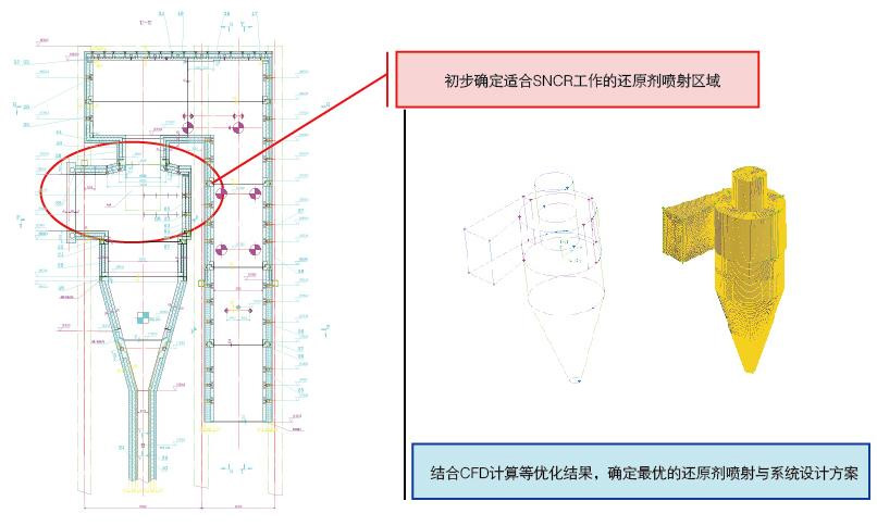 因?yàn)閷⒒瘜W(xué)反應(yīng)劑噴入爐內(nèi)正確的位置,溫度場(chǎng)會(huì)隨鍋爐負(fù)荷變化而變化,因此要求SNCR技術(shù)在設(shè)計(jì)階段對(duì)鍋爐實(shí)施計(jì)算機(jī)模擬分析,從而設(shè)計(jì)出隨溫度場(chǎng)變化的運(yùn)行控制系統(tǒng)。